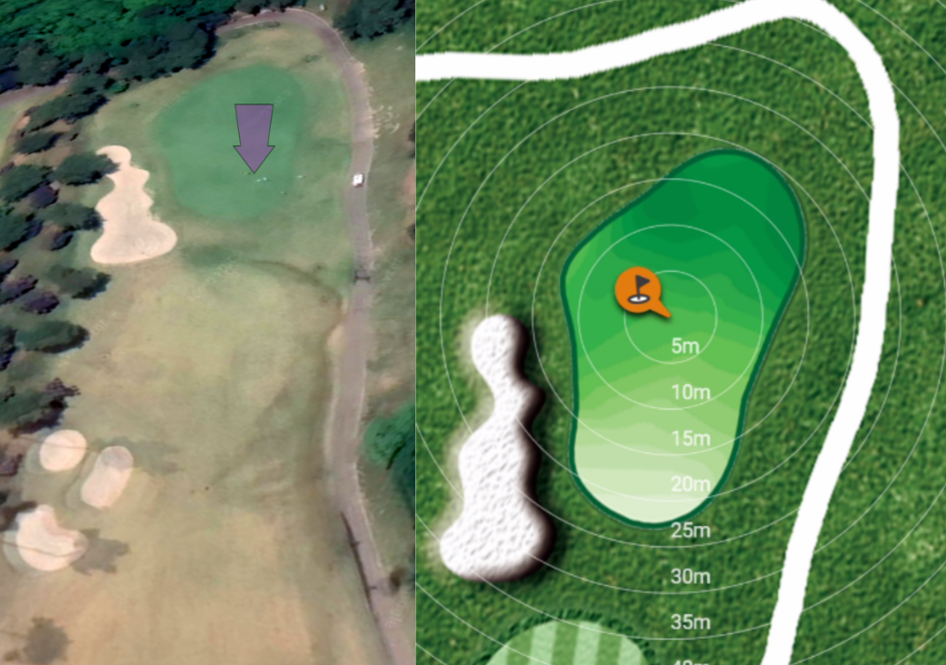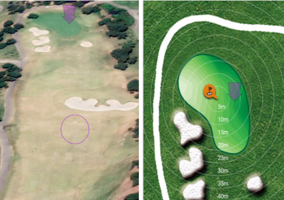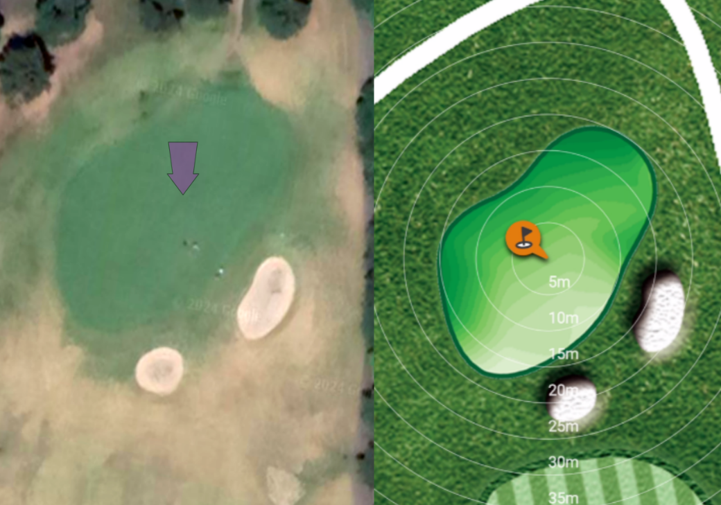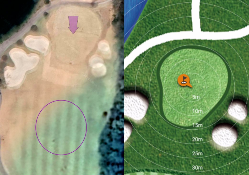 구글어스나 카카오맵으로 확인해 보니 100미터 정도 뒤에 그린이 있습니다.