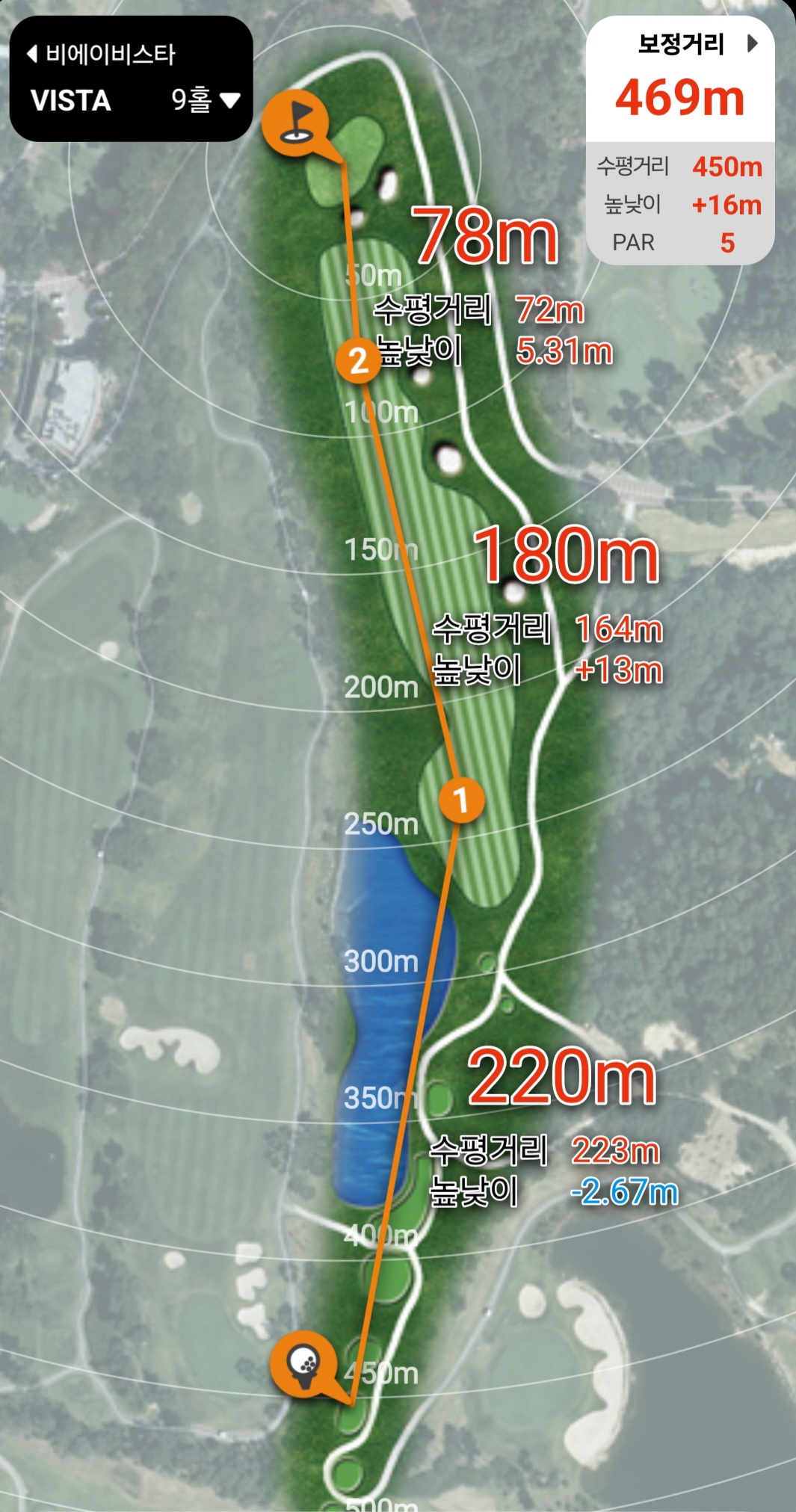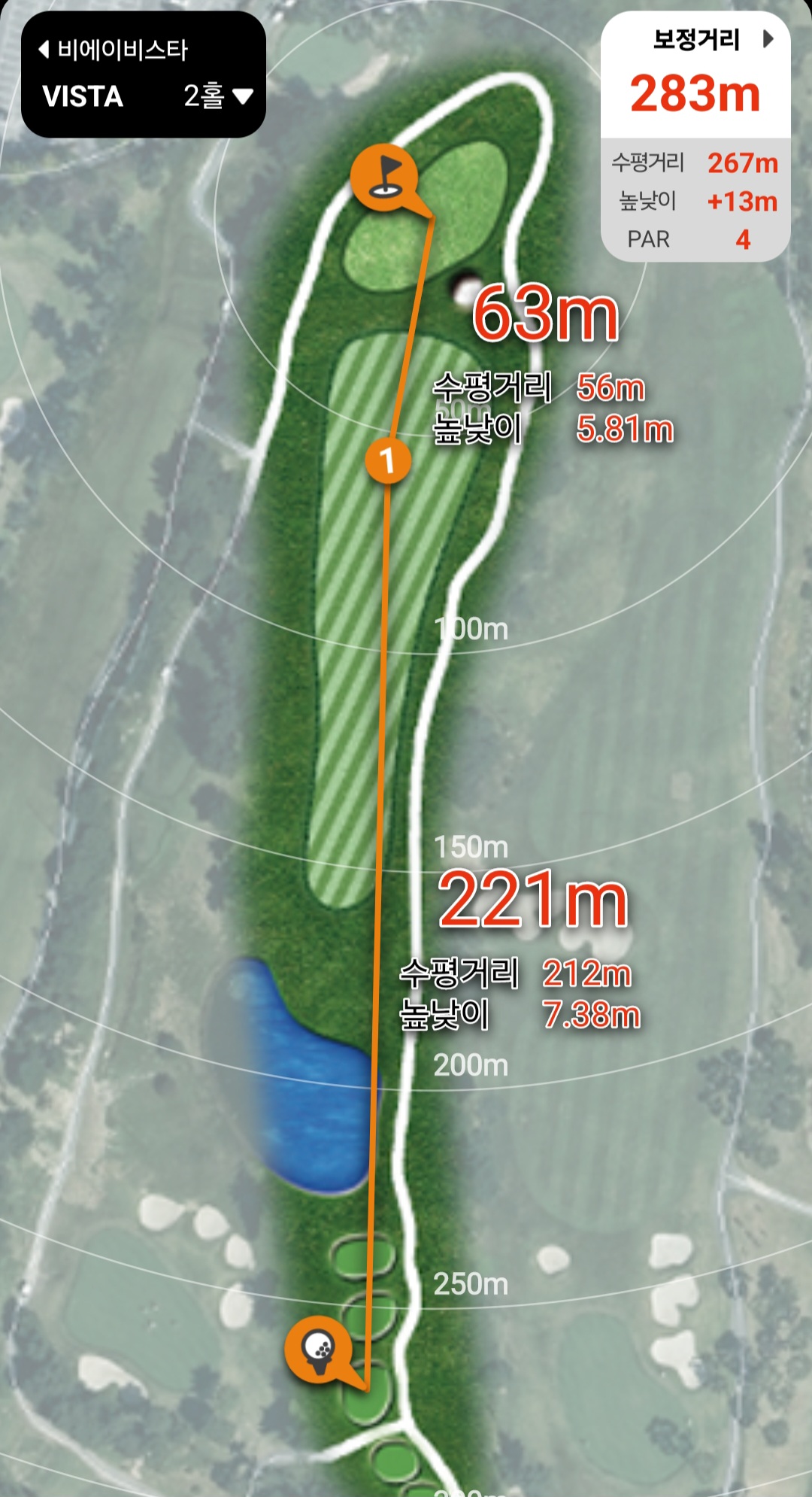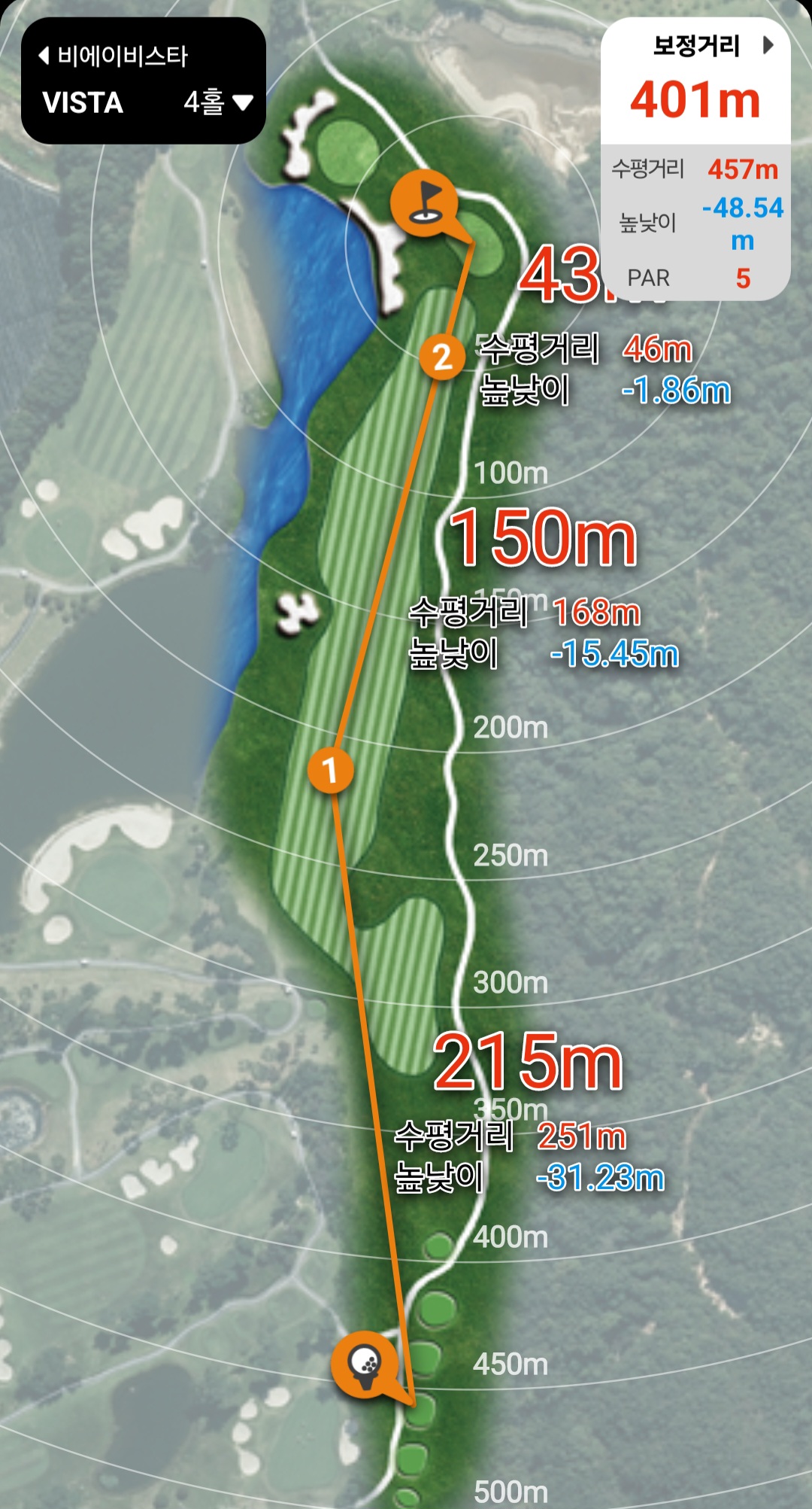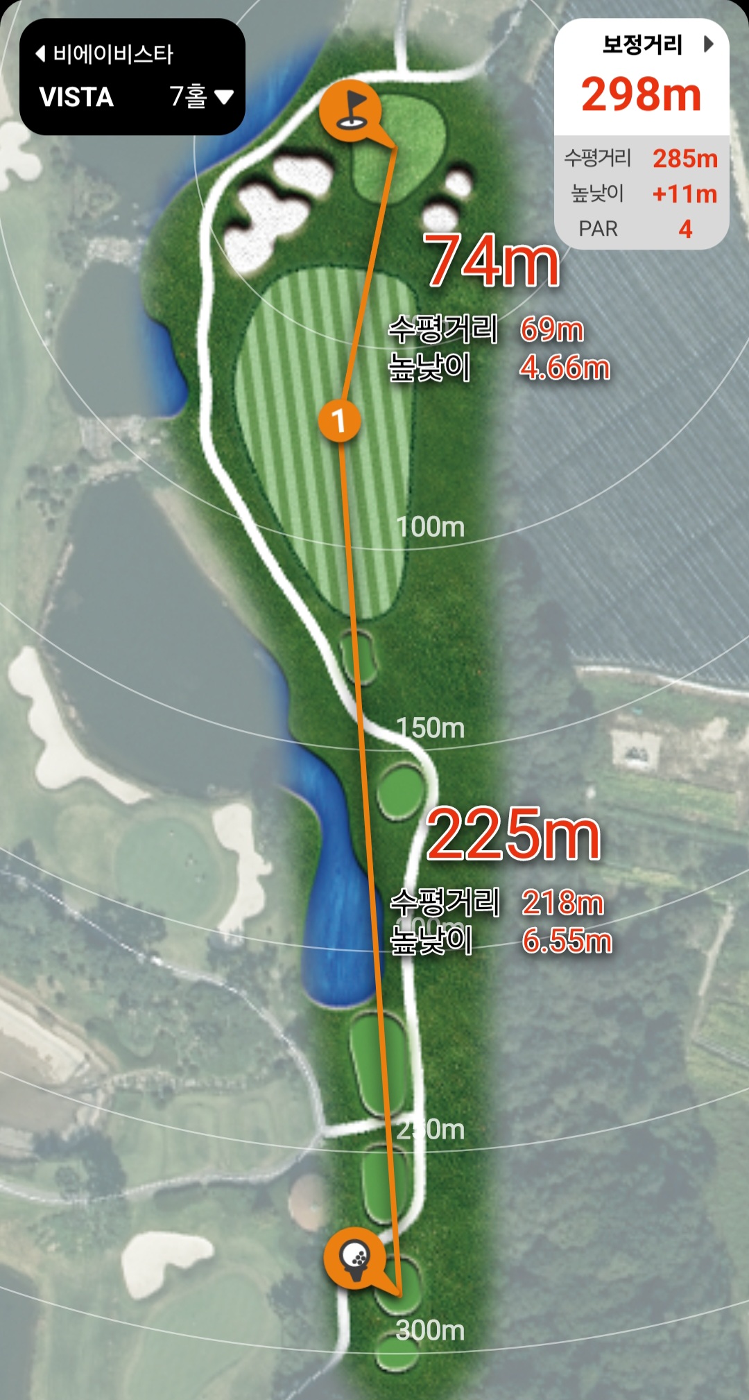 비에이비스타 cc는 티박스가 여러 군데라 상황에 따라 거리를 확인해야 합니다.