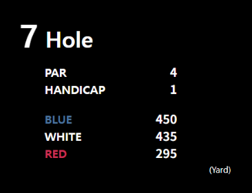 비스타 코스 7번 홀은 핸디캡 1번으로 플레이되는 가장 어려운 홀입니다.