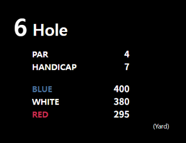 비스타 코스 6번 홀은 비교적 짧은 코스이나 대형 연못이 자리하고 있어 티샷 거리에 신경을 써야 합니다.