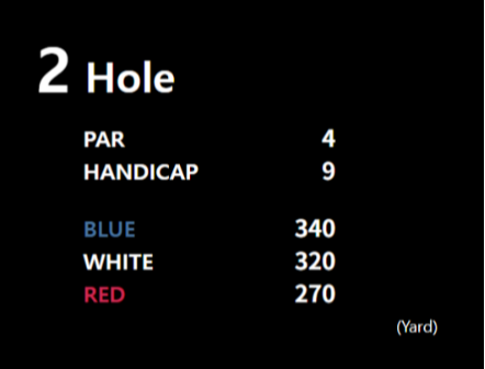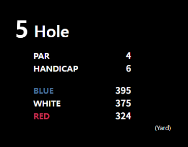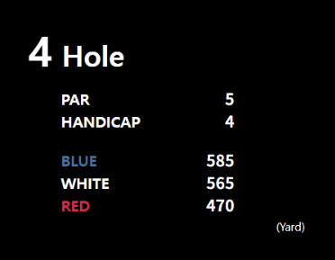 약간 우 도그렉 홀로 티샷은 무난하지만 그린 공략의 각도가 잘 나오지 않아 까다로운 홀이다.
